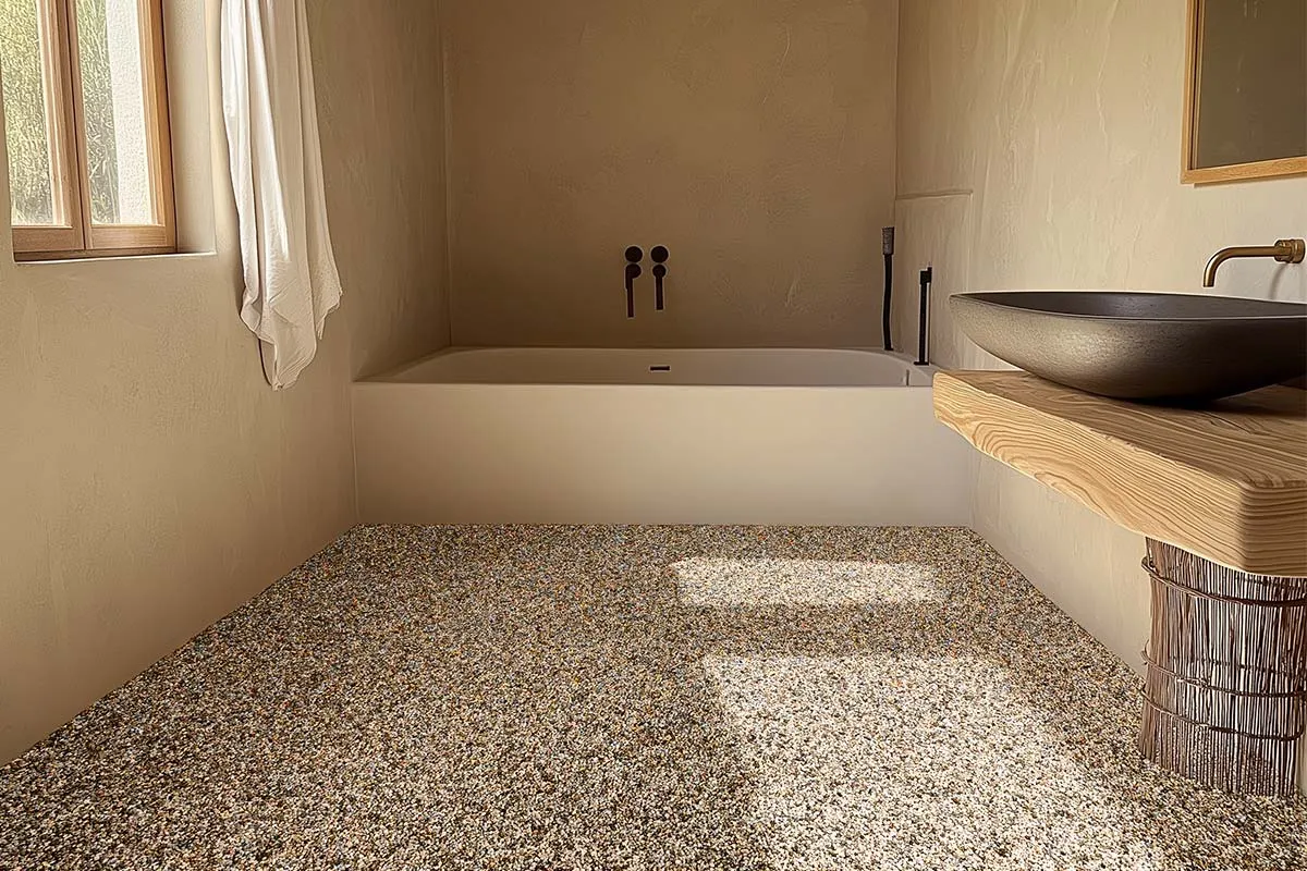It consists of a joint-free surface made of natural stone aggregate and resin. It offers a strong, slip-resistant, and fashionable finish to indoor and outdoor environments.